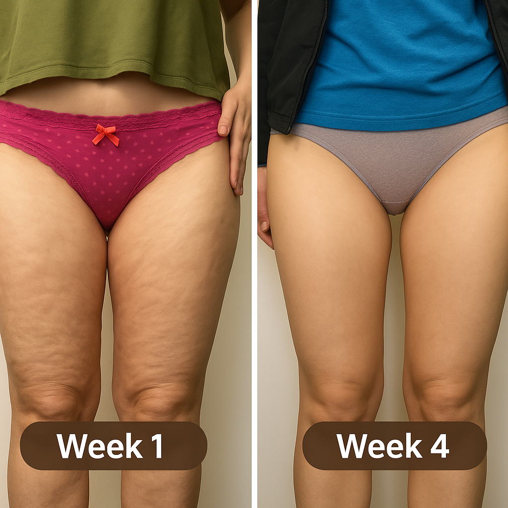 The result: In just 3 minutes of massage daily, you're not covering up dimples. You're eliminating the structural weakness that causes them.